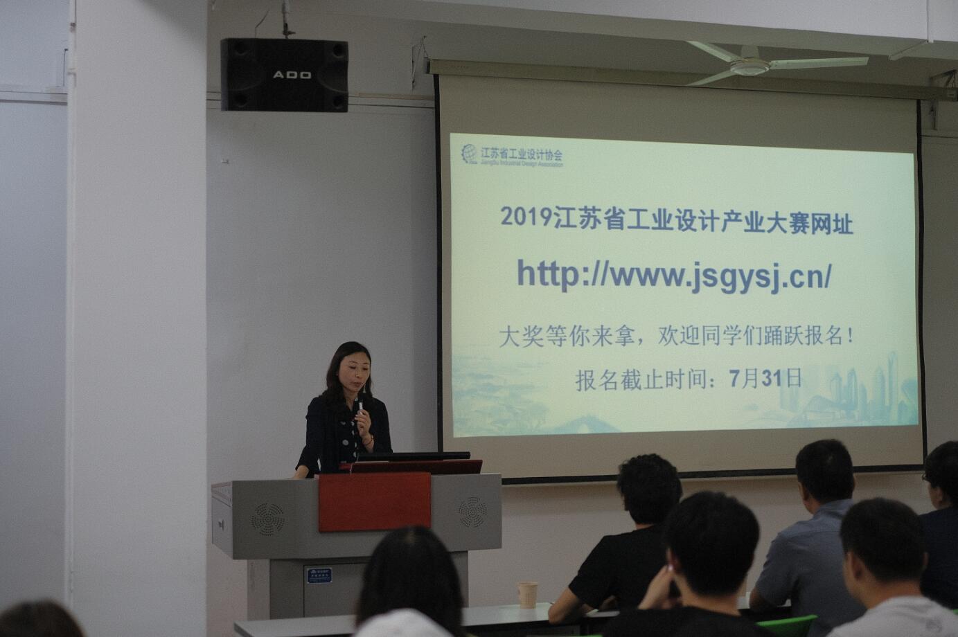 随后江苏省工业设计协会秘书长江莉女士做出了简短的发言,主要致力于弘扬年轻设计师们的积极热情,与在场的学生进行了互动。