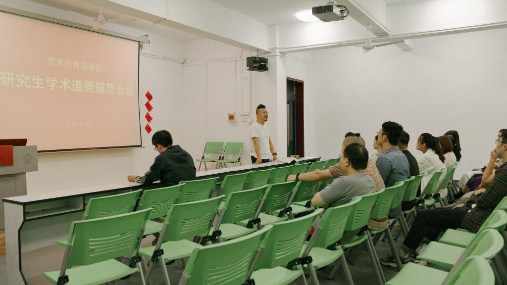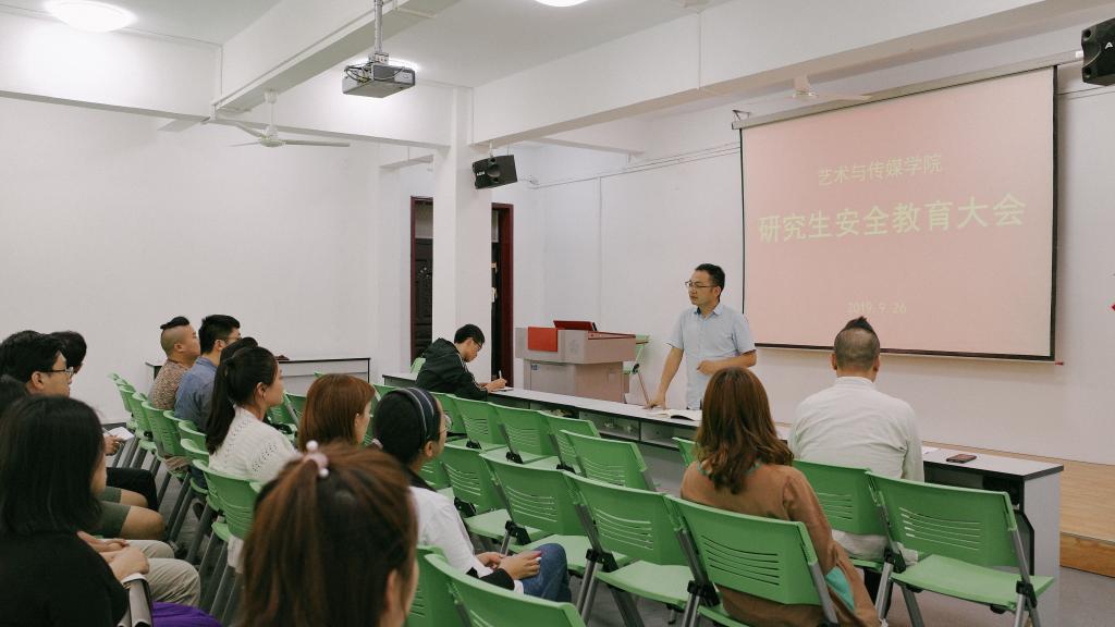 9月27日,艺术与传媒学院在X309多媒体会议室召开了本学期研究生学生工作会议,学院党委书记周著、研究生秘书郑鸿飞及全体研究生参加了本次会议。会议由副院长苏胜主持。