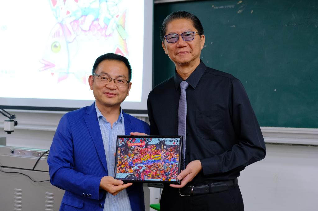 讲座开始前,院党委书记周著代表学院向敖幼祥先生赠送了师生创作的非遗文创作品。随后,在历时两个小时的讲座中,敖幼祥先生首先回顾了自己三十年来漫画创作之路,用“动漫创作是一场美丽与哀愁并存的系统工程”来告诉大家,在成功的道路上一定要勤奋与坚守。在漫画示范分享部分从动漫基本表情出发,演绎由概念表情推演到具体动作的变化过程。在作品讲解部分,以个人代表作《乌龙院》为例,详细阐述了动漫作品在不同媒介演变下的发展历程,并表示,漫画家要积极运用新的技术与方式来表现自己的作品。最后,敖幼祥先生与现场师生进行了生动有趣的“画漫画猜成语”交流互动活动。