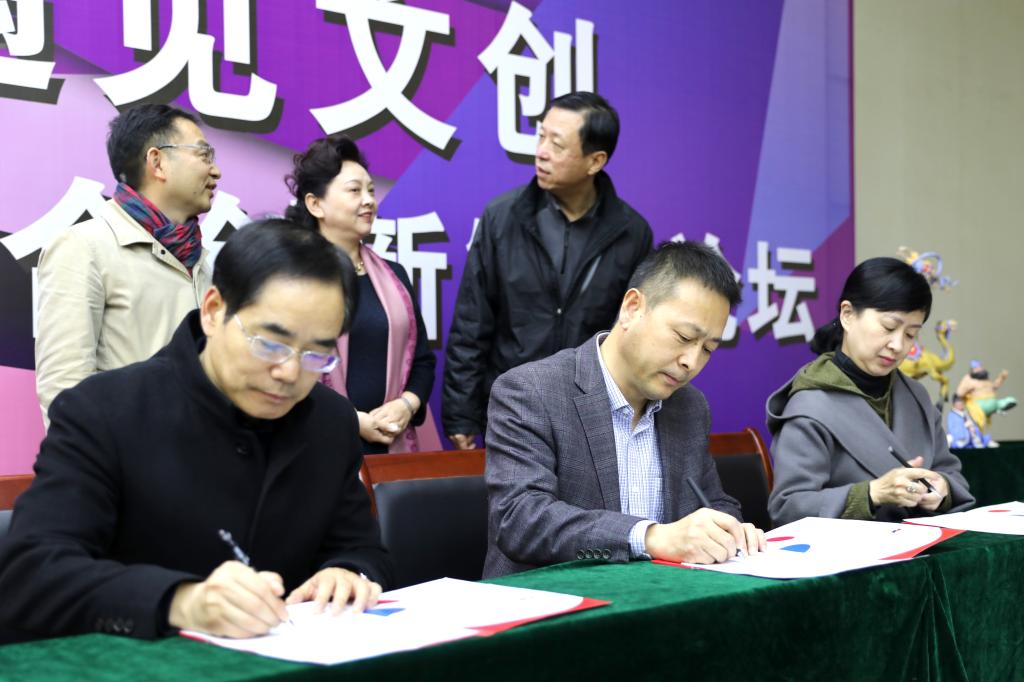 论坛举行了三方共建永利集团非物质文化遗产创新发展研究中心项目,挂牌成立陕西省非物质文化遗产产业促进会产学研基地两项签约。陕西省非物质文化遗产产业促进会袁红会长、陕西动漫产业平台管理中心周伟东主任分别讲话。