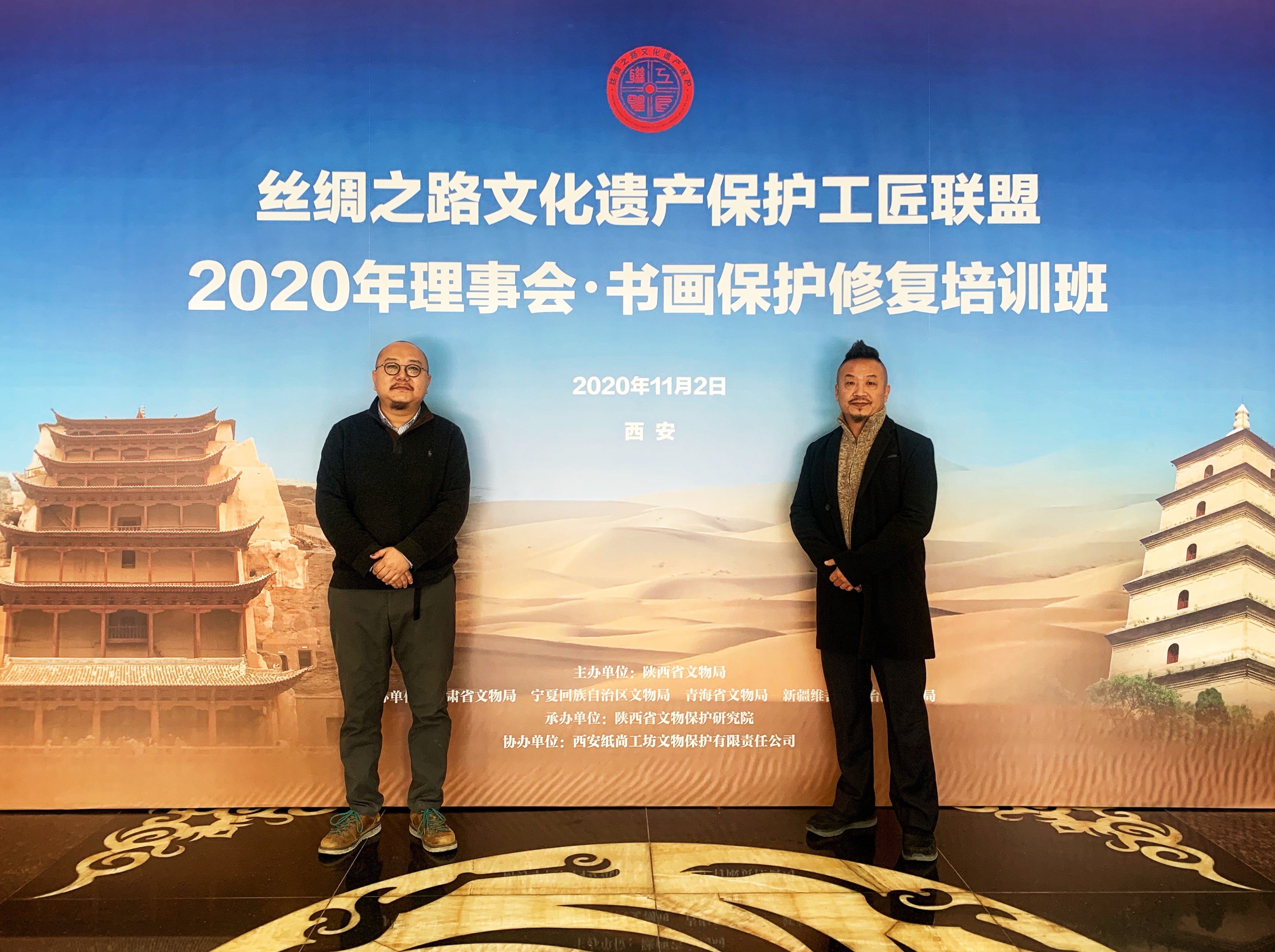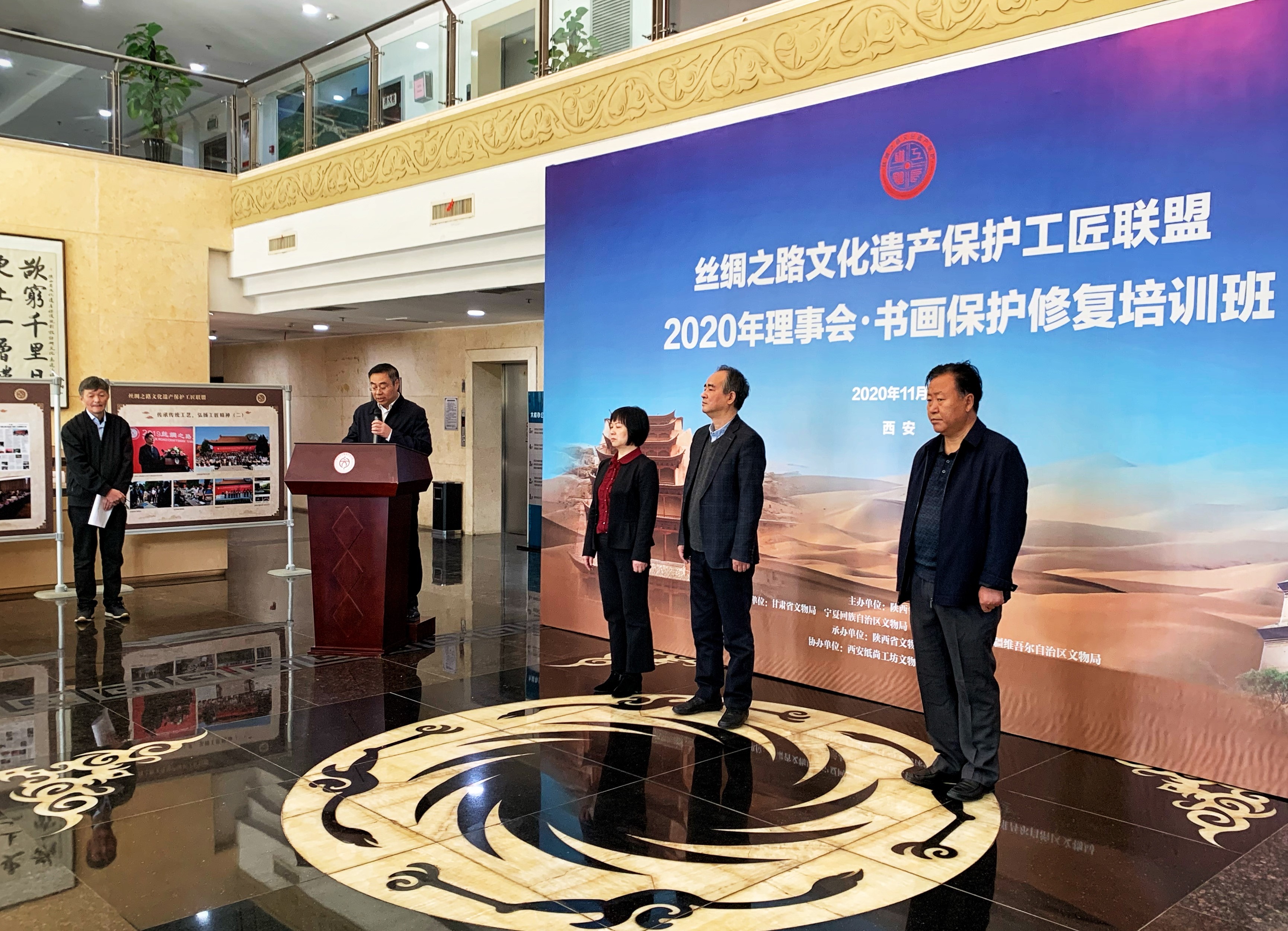 丝绸之路文化遗产保护工匠联盟首届“书画保护修复培训班” 今天在陕西省文物保护研究院开班,来自陕西省文物局副局长贾强、甘肃省文物局副局长白坚、青海省文物局副局长马占庭,丝绸之路文化遗产保护工匠联盟理事会的理事,永利集团艺术传媒学院苏胜院长、艺术传媒学院古书画保护技术研究团队负责人田朋老师,以及来自陕、甘、宁、青的近30名学员参加了开班仪式(新疆的4位理事和5位学员因疫情防控的原因遗憾没能参加)。