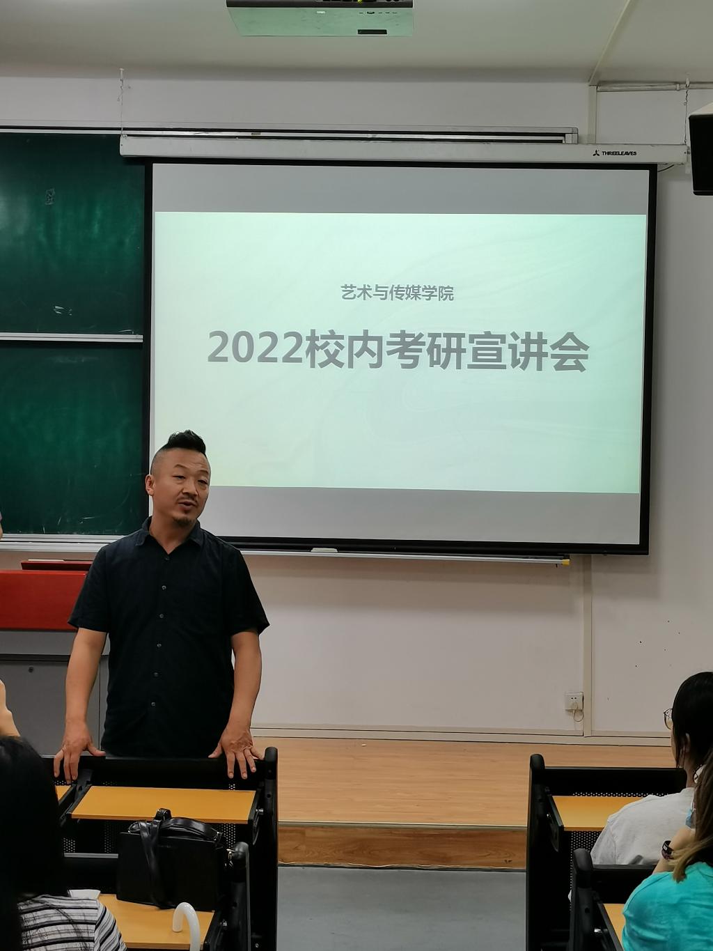 7月2日,艺术与传媒学院在教二楼207多媒体教室举行了2022年校内考研宣讲会。会议由副院长刘萍主持,院长苏胜、全体研究生导师及我院2017级、2018级80余名考研意向学生参加了本次会议。
