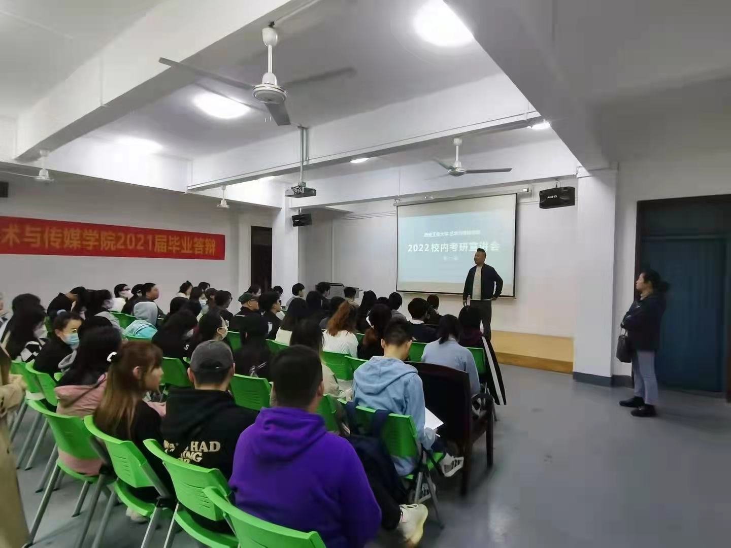 10月8日,艺术与传媒学院在金花校区x309会议室举办了考研宣讲会。院长苏胜、副院长刘萍就研究生报名等事项进行了详细说明,导师代表雷柏林、杨华及艺术学院、机电学院准备报考艺术硕士的大三、大四的60余名学生参加了此次培训。
