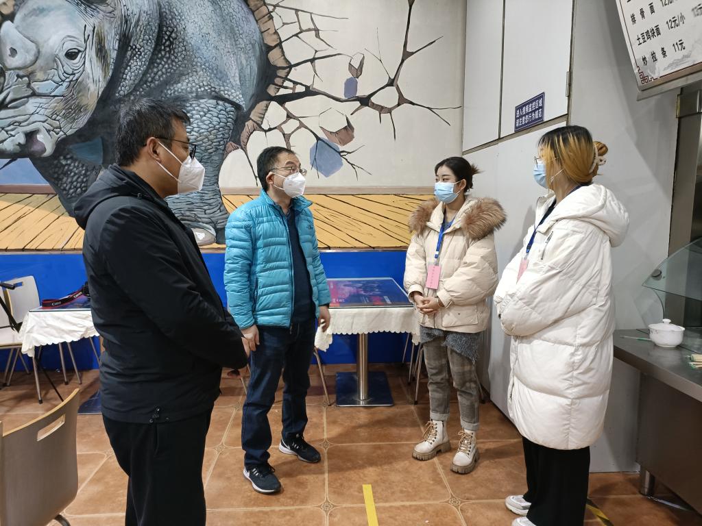 1月1日下午,学院党委书记周著带队走访慰问负责协助维护校园超市和食堂秩序的学生志愿者,班子成员和辅导员张秀丽参加了此次活动。
