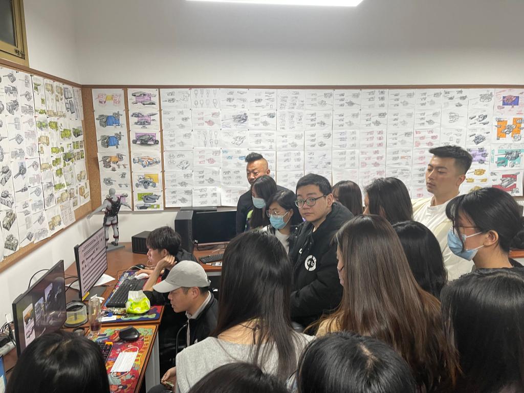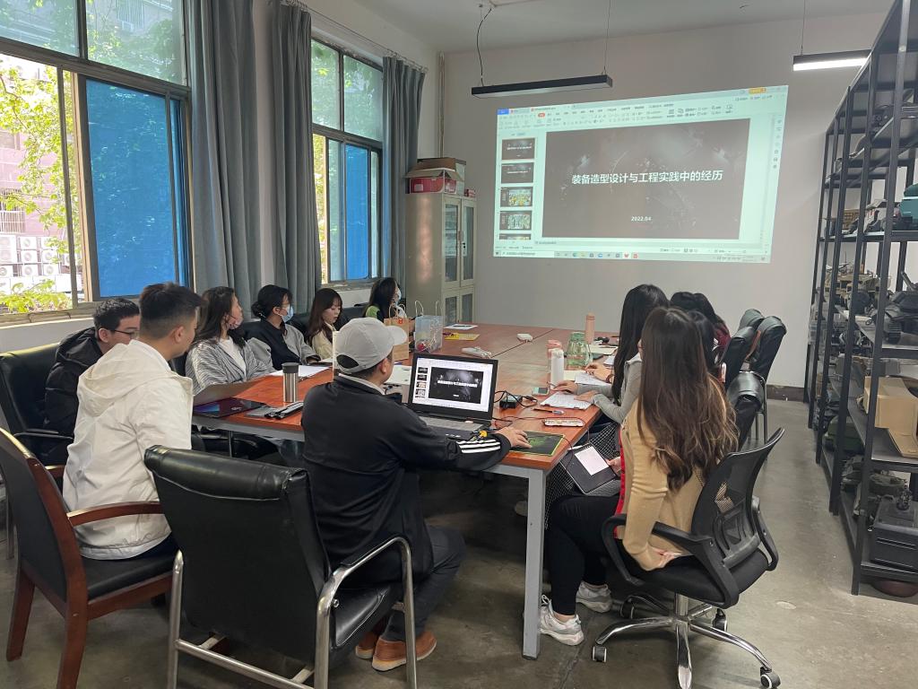 游庆斌总监从装备设计时,美学要素与工程技术要素的相互关系等维度,深入浅出进行了案例解析和经验分享。会后游庆斌与师生进行了互动交流,并对学生的兵器美学方面的设计实践提出了宝贵建议和更高要求。