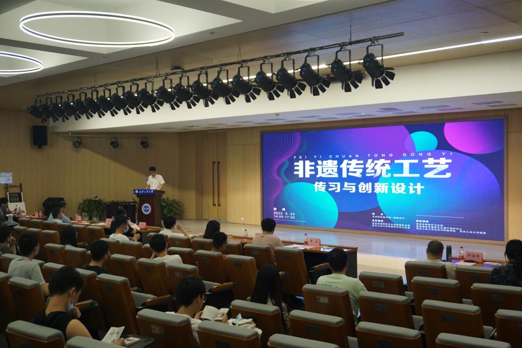 5月24日下午,“非遗进工大校园”系列研究生特色活动——非遗传统工艺传习与创新设计论坛在未央校区图书馆报告厅举行。碑林区文化馆馆长、碑林区非遗保护中心主任王敏、碑林区非遗保护中心副主任党雪梅、永利集团团委书记王守民、永利集团研究生院副院长高武奇、西安工大艺术传媒学院党委书记周著出席此次论坛。
