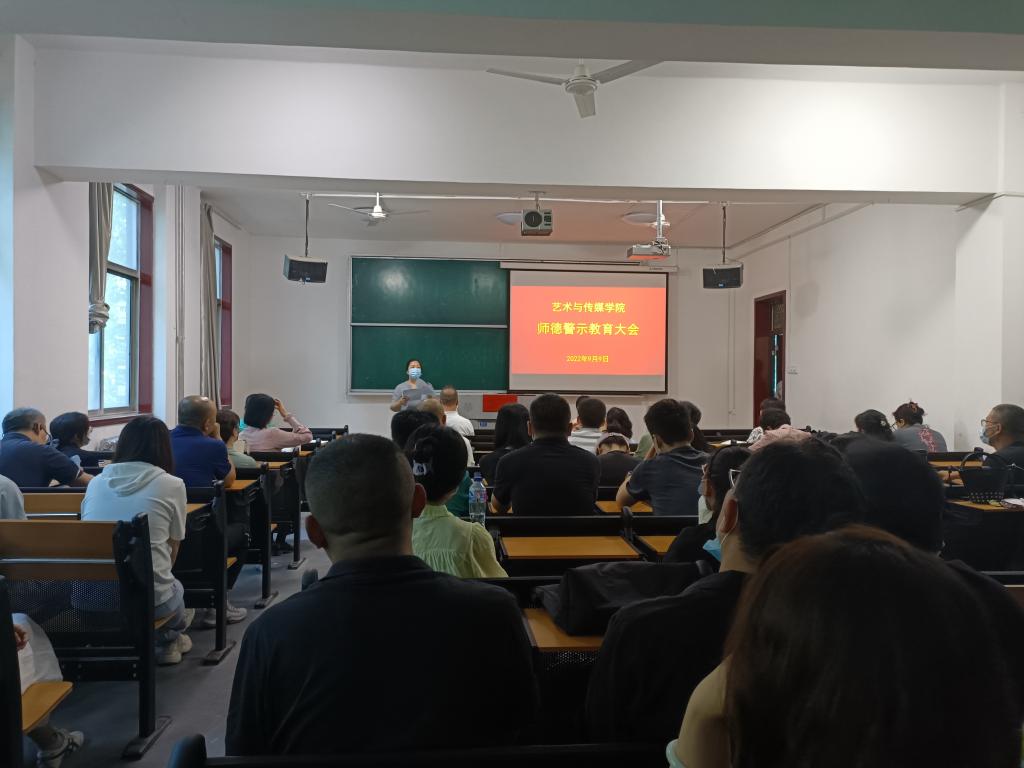 9月9日,艺术与传媒学院在J2-207召开师德师风警示教育暨纪律教育学习宣传大会,学院全体教职工参加了会议,党委书记周著主持会议。
