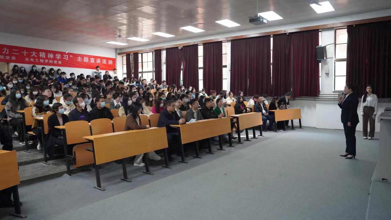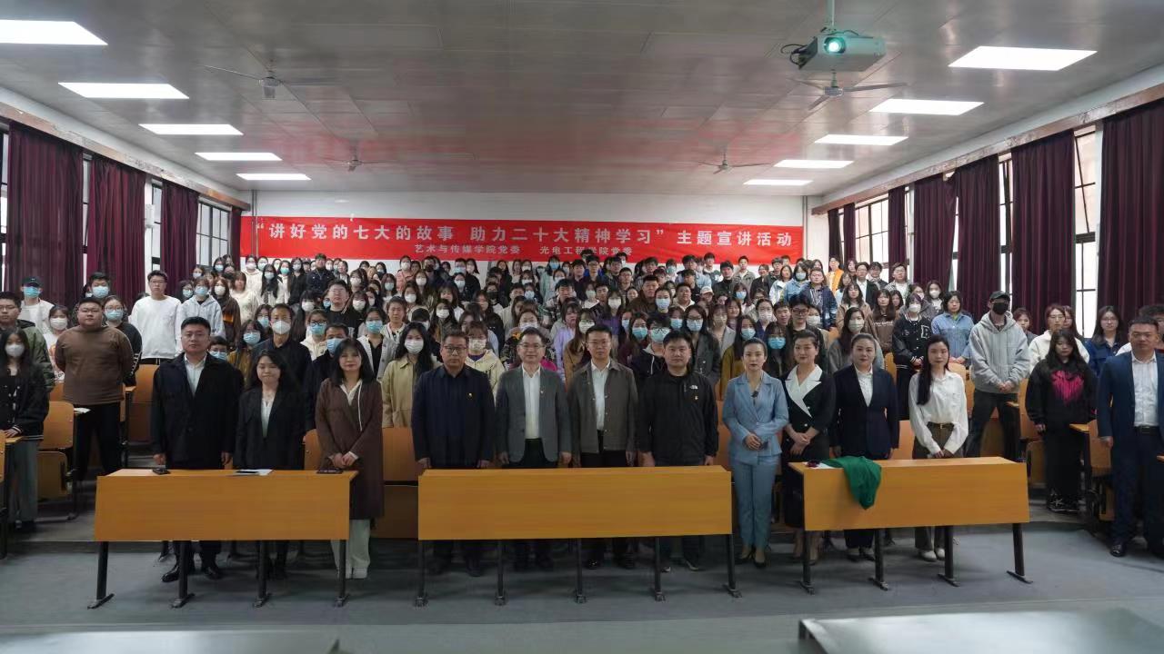 3月7日上午,“讲好党的七大故事,助力二十大精神学习”主题宣讲活动在金花校区5F-J1举行。本次活动由永利集团艺术与传媒学院党委和光电工程学院党委联合主办。延安鲁艺文化中心宣教部部长岳娟、杨家岭革命旧址管理处副主任薛健、艺术与传媒学院党委书记周著、党委副书记张晓宾、光电工程学院及艺术与传媒学院师生党员代表200余人参加此次活动。
