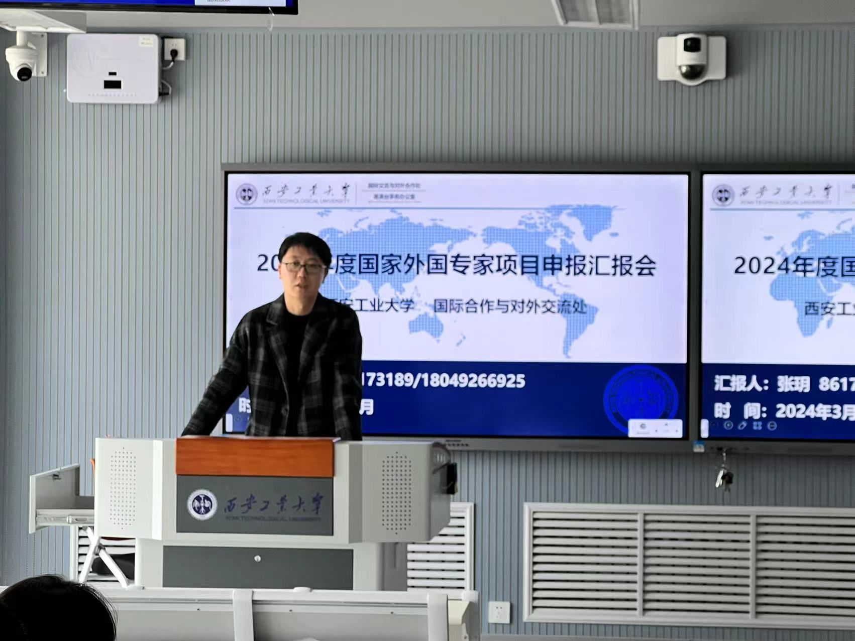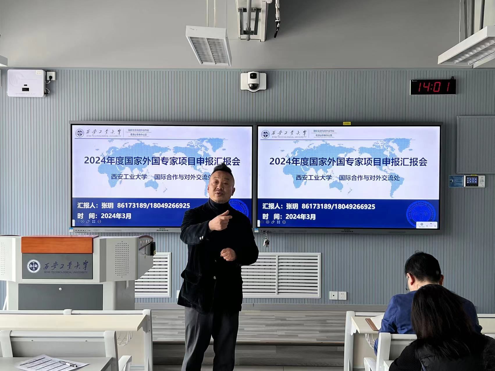 3月15日下午,我院邀请到校国际合作与对外交流处张玥老师,在教七楼315举办了2024年度国家外国专家项目申报讲座。学院党政领导及全体教师70余人参加了本次讲座。讲座由学院院长、省兵器工业中心主任苏胜主持。