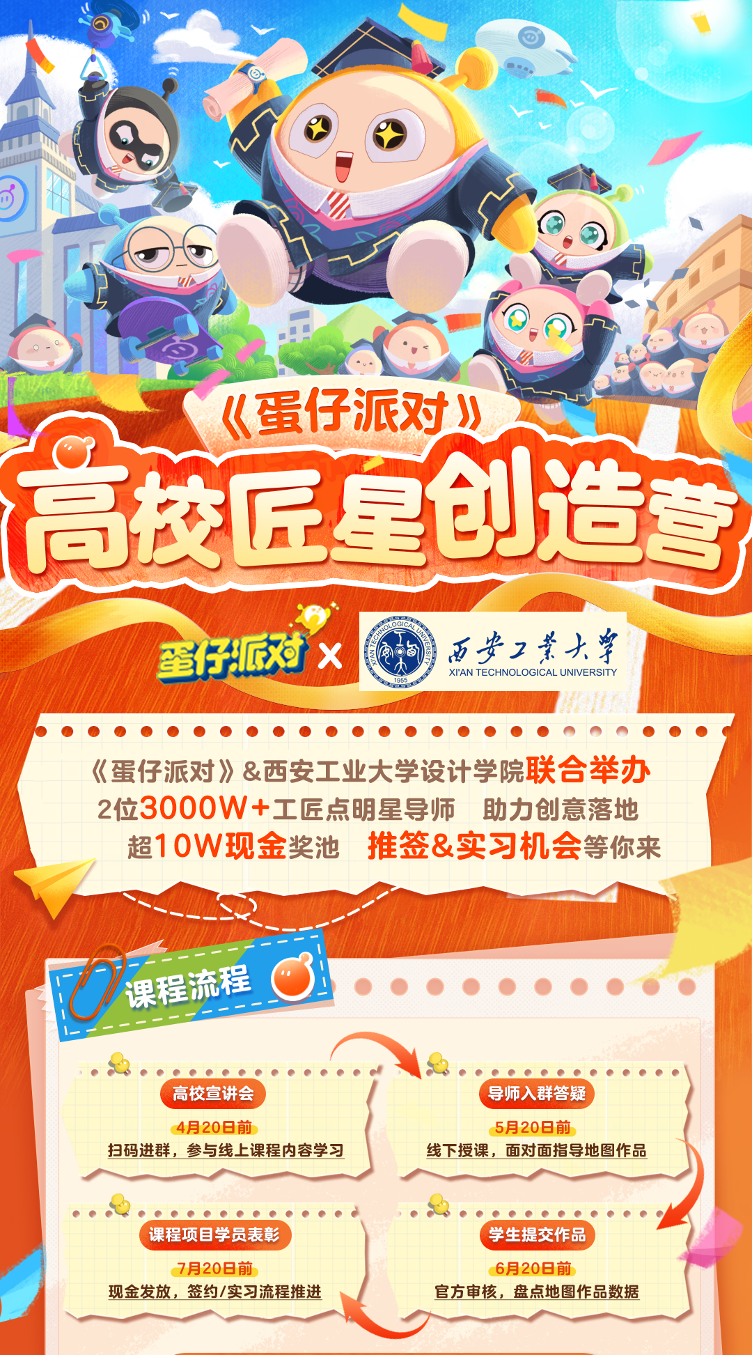 本次联合课程贯彻项目化教学,重构课堂生态,将网易旗下热门游戏《蛋仔派对》的关卡地图开发项目引入课堂。采用"双导师制",由网易资深游戏开发专家与学院数字媒体艺术专业教师组成教学团队,围绕玩法开发、关卡设计、交互逻辑等模块开展教学。参与学生将分组完成从创意提案到作品落地的全流程开发,优秀作品经网易专业评审后有望直接植入《蛋仔派对》游戏生态。