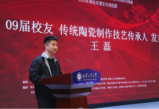 我院2009届校友,传统陶瓷制作技艺传承人王磊分享自己在非遗传承道路上的经验与感悟。