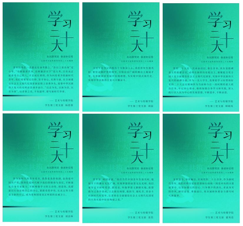 支部党员紧紧围绕“深入学习宣传贯彻党的二十大精神”这一主题,聚焦党的二十大,书写心中最真实的感想,表达对党的忠诚、对祖国的热爱和祝福。党员杨思蓉说:“作为向党看齐的新时代青年,我们要坚定信仰、坚守初心、充满力量,在全面建设社会主义现代化国家新征程上奋勇争先,迎着中华民族伟大复兴的光明前景阔步前行”;党员胡喆说:“我们青年生逢其时,要坚决拥护党的领导,尽情在这广阔的舞台上施展才华,在奉献国家发展中实现理想,为实现中国式现代化、实现中华民族伟大复兴不懈奋斗”。