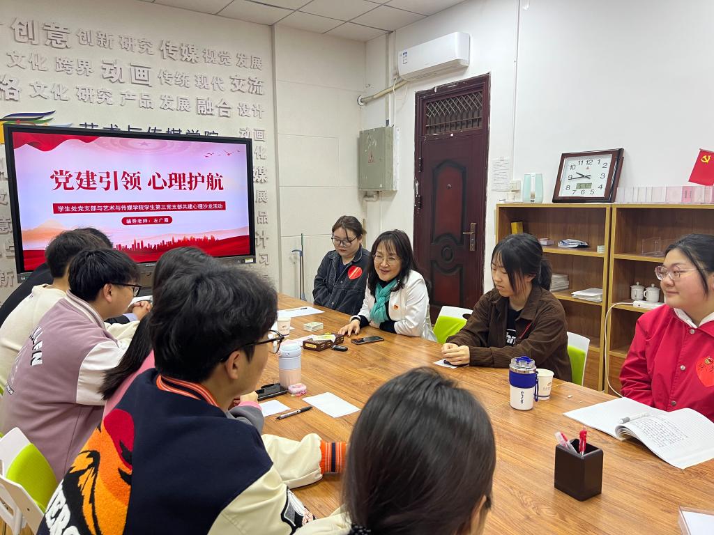 5月4日,学生处党支部与艺术与传媒学院学生第三党支部在金花校区J2-202开展“党建引领,心理护航”共建心理沙龙活动,活动由艺术与传媒学院学生第三党支部书记杨娜娜主持,学生处党支部心理健康专职指导教师左广霞主讲,艺术与传媒学院学生第三党支部全体党员参加。