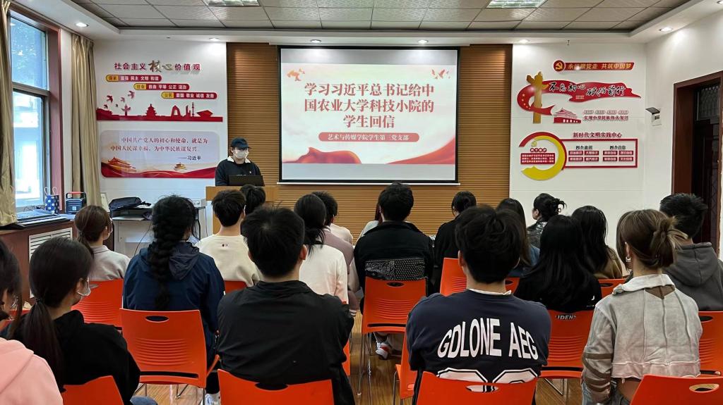 5月4日,艺术与传媒学院学生第三党支部组织开展“习近平总书记给中国农业大学科技小院的学生回信”专题学习会议,支部全体党员参加。