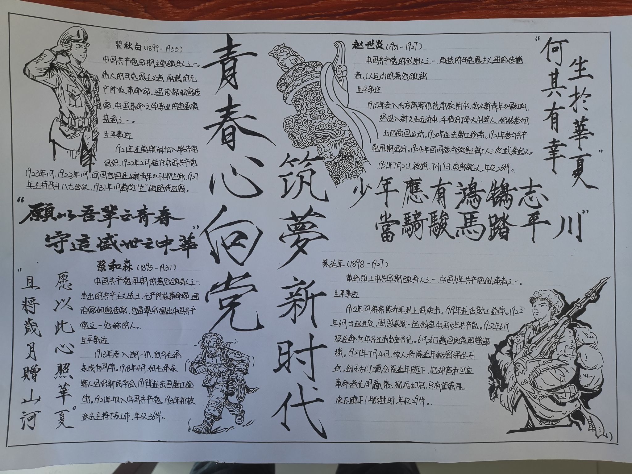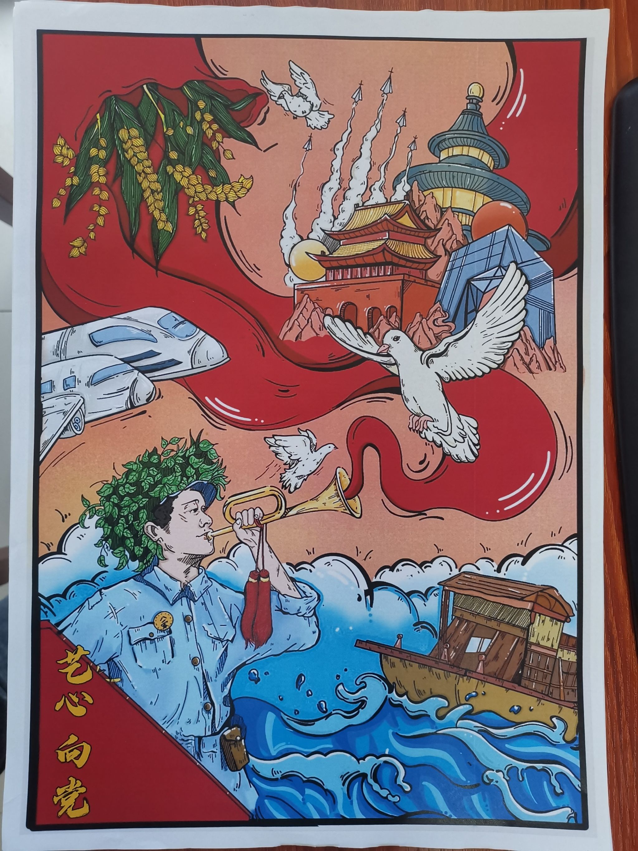 活动中,支部党员围绕“青春心向党,筑梦新时代”的主题,结合学院专业特色,发挥专业特长,以图文并茂的方式呈现党的伟大历程、革命先烈的光辉一生和当代青年的使命担当,通过书写、绘画加深对党史的学习和认识,自觉肩负起时代赋予青年人的使命和担当,在青春奋斗中书写无愧于时代的精彩华章。