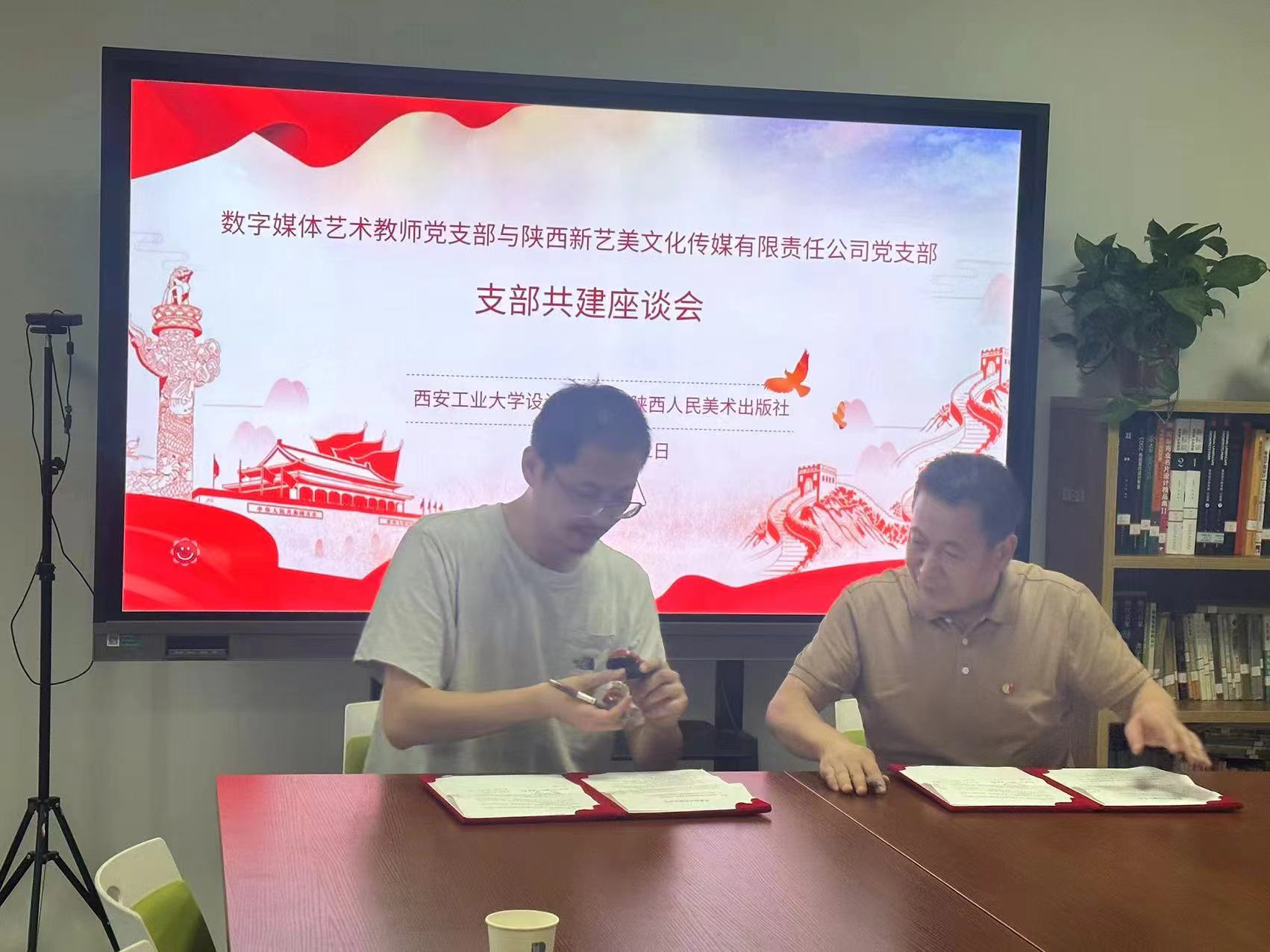 7月2日下午,数字媒体艺术教师党支部同陕西人民美术出版社陕西新艺美文化传媒有限责任公司党支部举办了主题为“同心共融促发展”的支部共建活动,陕西新艺美文化传媒有限责任公司党支部书记王生会,数字媒体艺术教师党支部书记任怀琎参加。