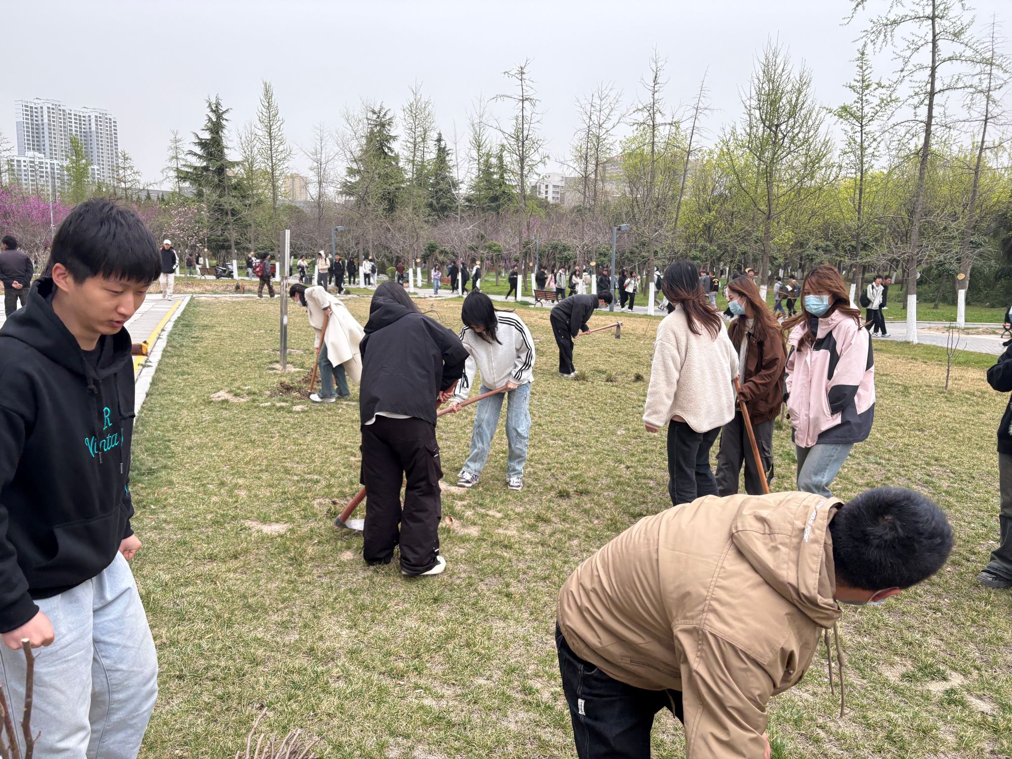 活动伊始,洪涛分发树苗、植树工具,并合理编排植树小组。经过整地、挖坑、回土、种植、浇水再是覆土,最后枣树苗落地,大家一起在汗水中感受到了劳动的价值,为地球“减碳”,为校园“增绿”。大家纷纷表示,通过这次植树活动,增强了党员们的环保意识,培养了社会责任感和动手能力,支部将持续开展各类环保实践活动,为打造绿色校园、推动可持续发展贡献更多力量。