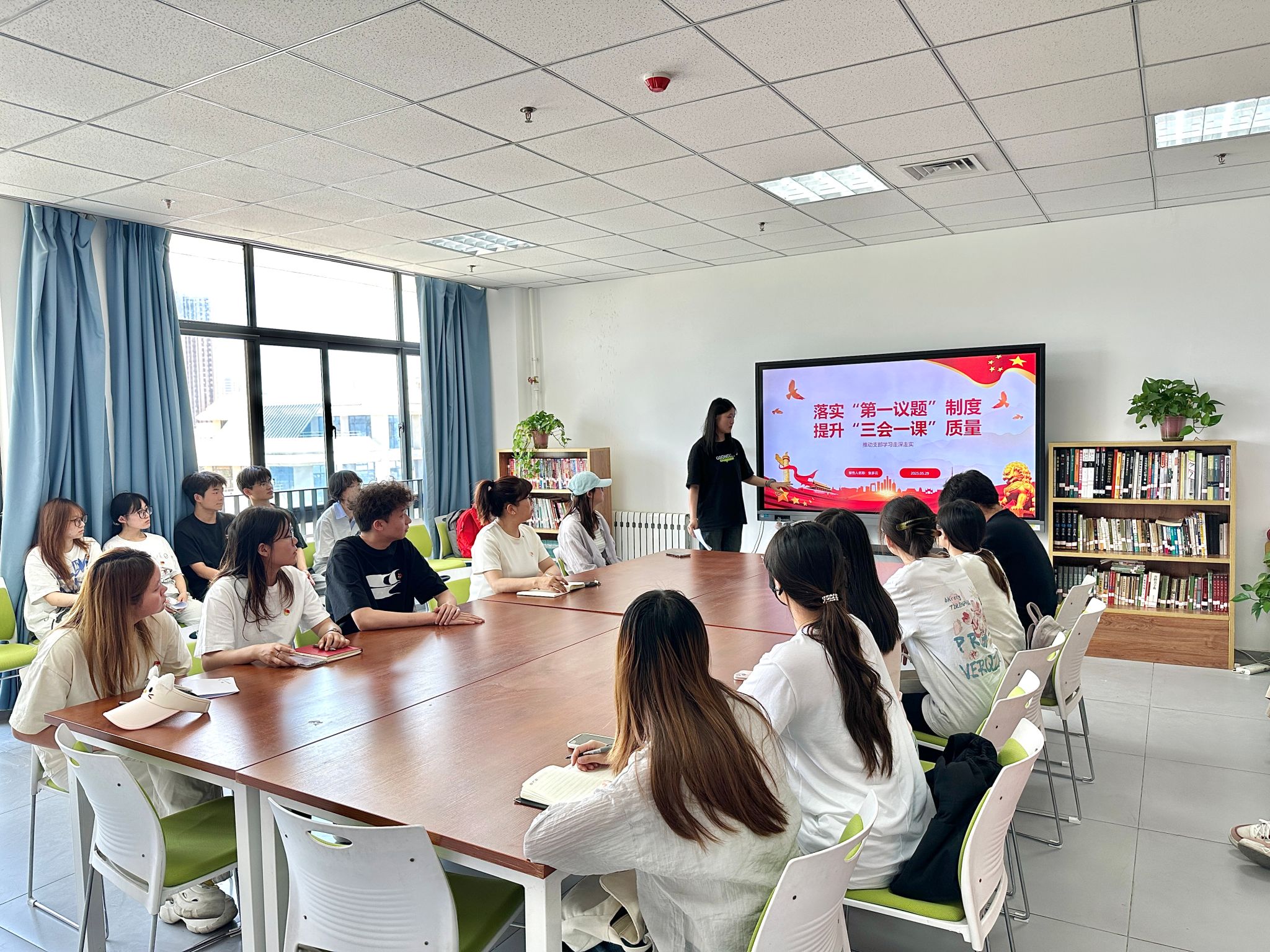 5月29日,视觉传达设计本科生党支部于教7-617开展严格落实“第一议题”制度,强化政治站位专题学习,会议由党支部书记杨娜娜主持。