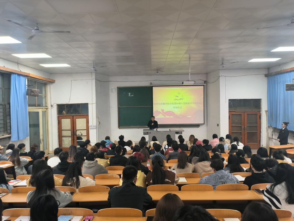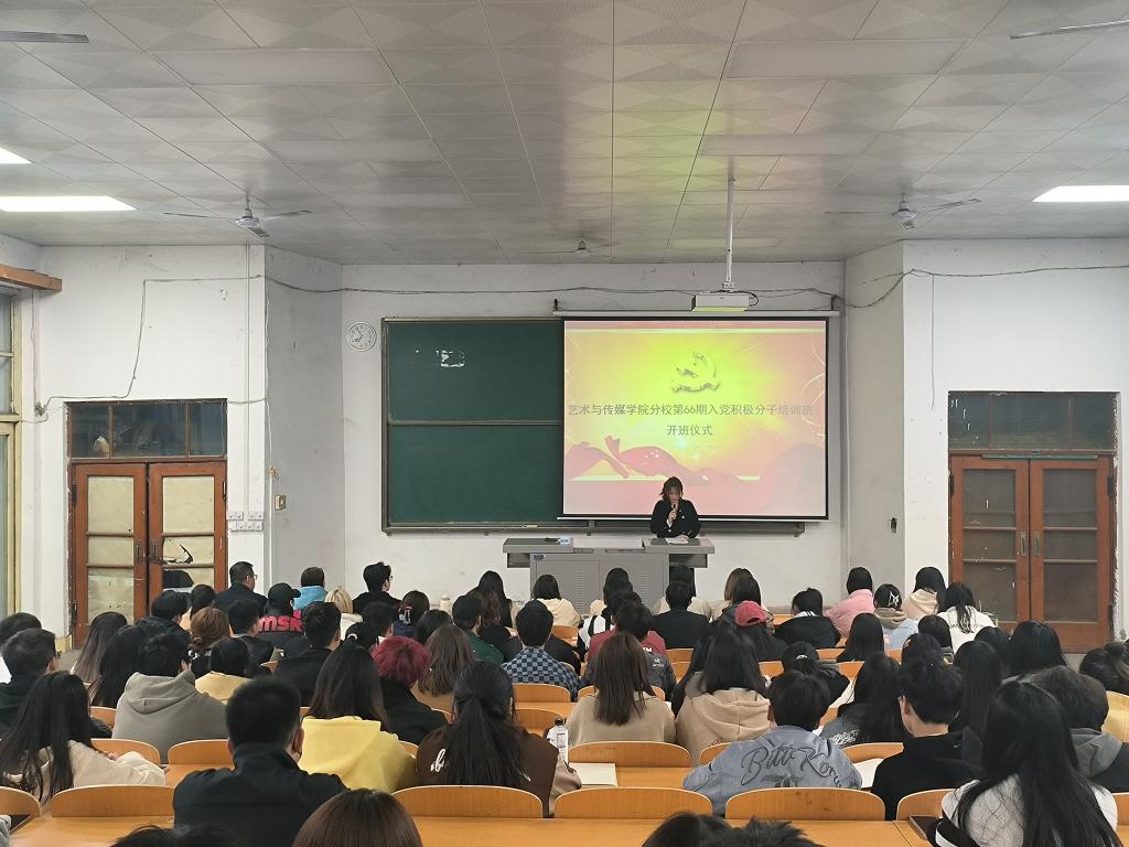 4月4日晚,艺术与传媒学院举办第六十六期入党积极分子培训班开班仪式及理论授课第一讲。学院党委副书记张晓宾、组织员张秀丽参加,开班式由学生第三党支部副书记刘洁林主持。