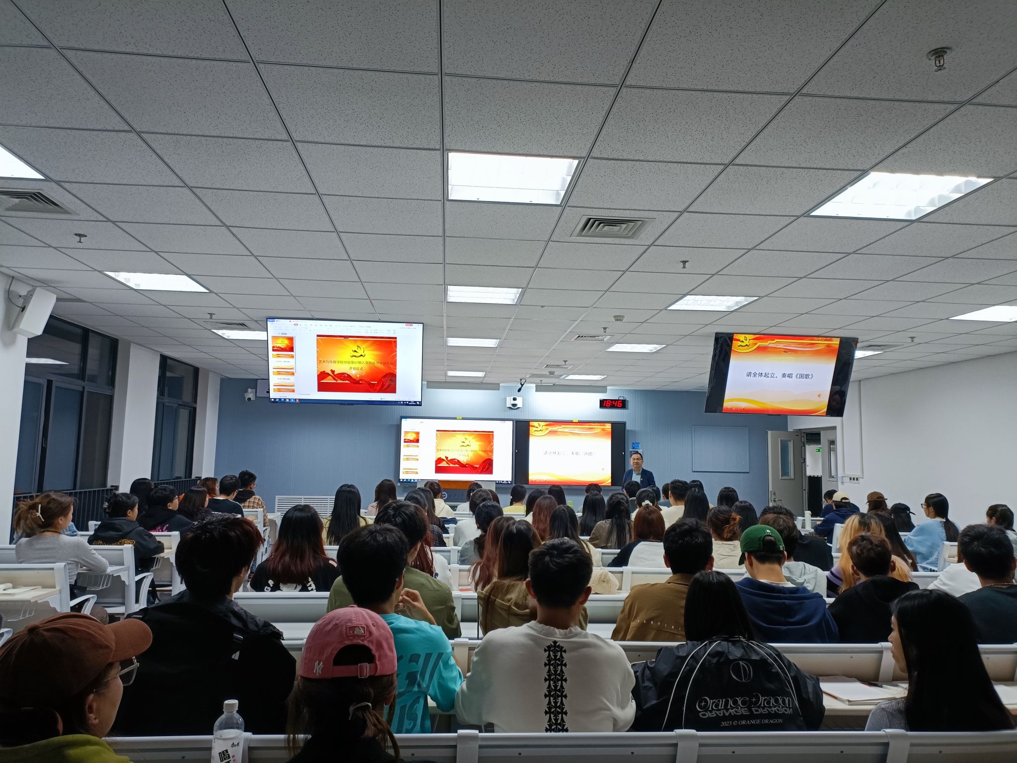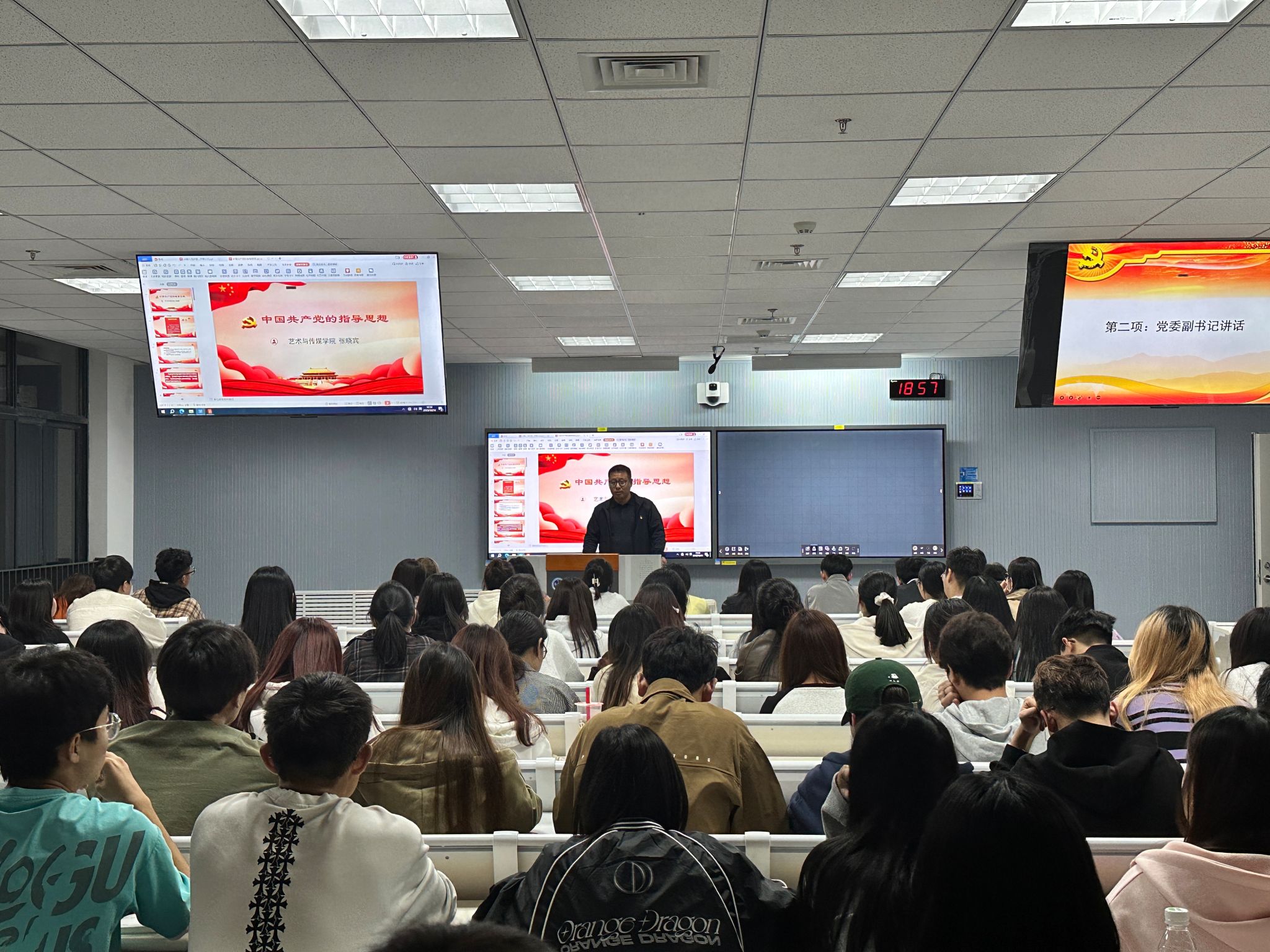 1016日晚,艺术与传媒学院举办第六十入党积极分子培训班开班仪式及理论授课第一讲。学院党委书记周著、党委副书记张晓宾、组织员张秀丽参加,开班仪式由学生马晨浩主持。