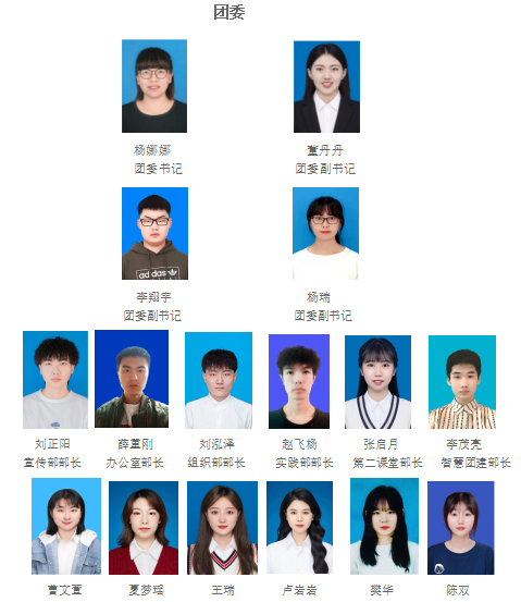 主要负责工作:团委办公室为了保证团委各个活动进行的顺利有序,办公室将统计各个部门需要的数据进行相互对接,同时,收集的资料需要严谨的格式和正确的整理。同时办公室不光在团委,也服务于学校,包括团费及一些团日活动。在活动的灵活中保持我们的严谨。