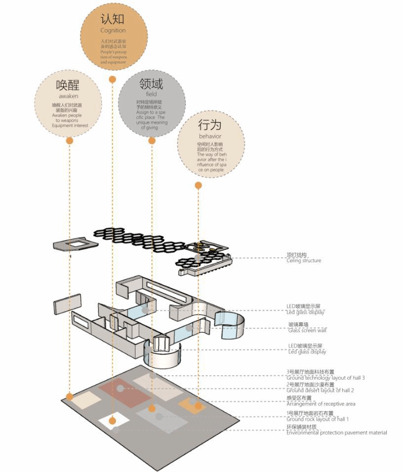 以中国兵器工业集团在曲江会展中心会展设计为例,提出根据环境心理学的武器装会展设计的概念及设计方法,从行为唤醒的角度提出设计策略,找出武器装备会展设计的共性,及加强空间环境、合理对区域进行规划、考虑参观者的环境心理和行进路线以及特定人群特征的需求和人群密度距离等。以此激发参观者的兴趣及归属感,从环境心理学的角度提升参与乐趣,探索出武器装备会展设计空间的可持续发展模式。总结武器装备会展中的空间关系以及设计手法,分析出武器装备展与其他会展的特殊性,将空间中“观看”与“互动”的展示方式相结合,从而满足时代发展下的新兴展会需求,使其更加匹配主题设计。通过环境布置的烘托,创造展品景观的创新点和中心点,加强参观者对空间的认同感。