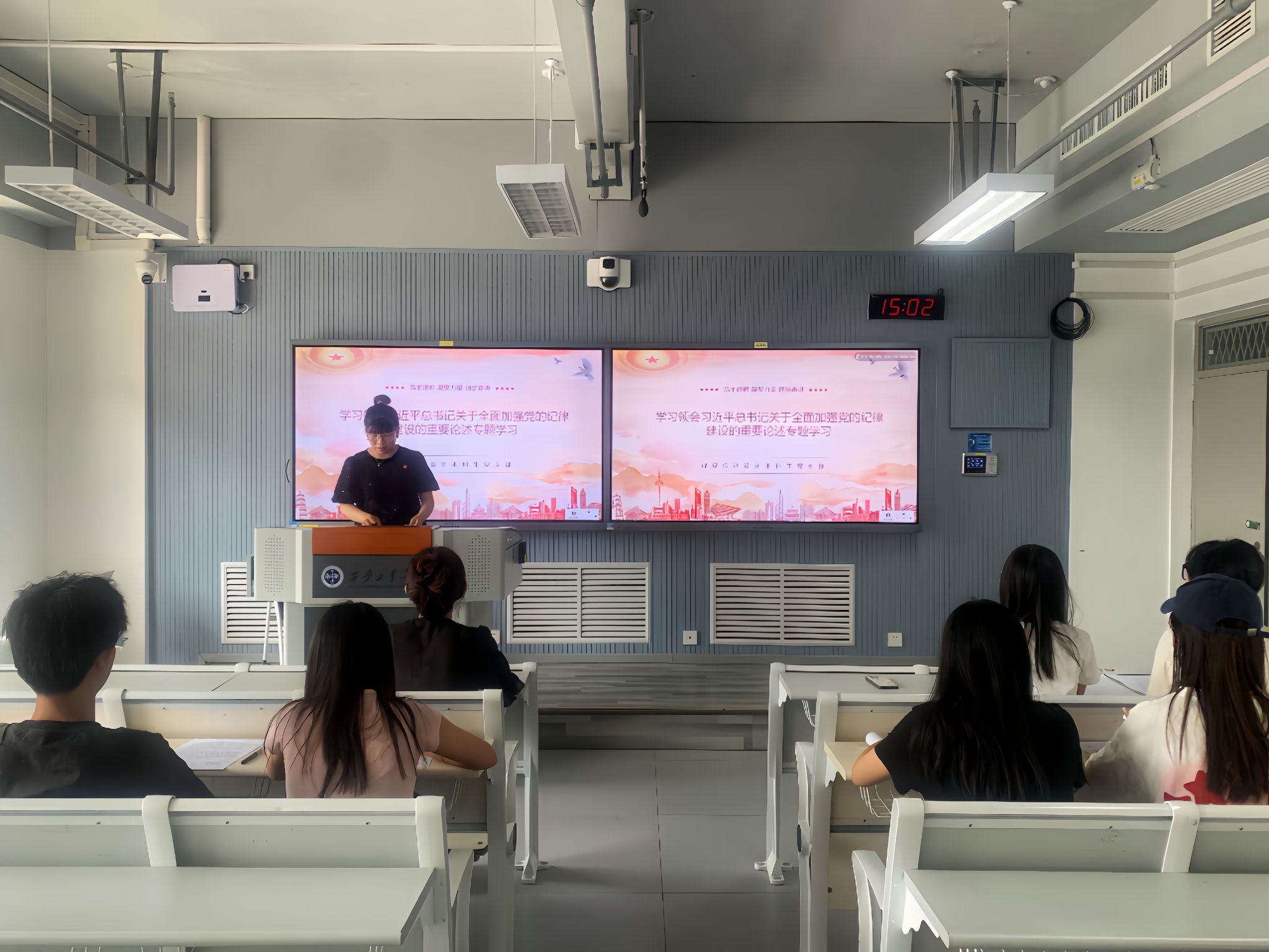 各党支部组织支部党员认真学习了习近平总书记关于全面加强党的纪律建设的重要论述,深学细悟,研讨交流,扎实开展党纪学习教育。在交流阶段,教工党员王晶、于振玺等谈到,要深刻理解纪律建设的内涵,将纪律建设与实际工作紧密结合,不断加强自我监督和自我完善,永葆清正廉洁的政治本色,筑牢拒腐防变的底线,将纪律建设的要求内化于心、外化于行,以实际行动推动党的纪律建设不断向前发展。学生党员甘立玖、李程程等谈到,作为一名大学生党员,要加强党性修养,时刻保持清醒头脑,自觉遵守党的纪律,带头学习和遵守党的章程,做到言行一致、表里如一,充分发挥党员先锋模范作用,带动身边的同志一起加强纪律建设。
