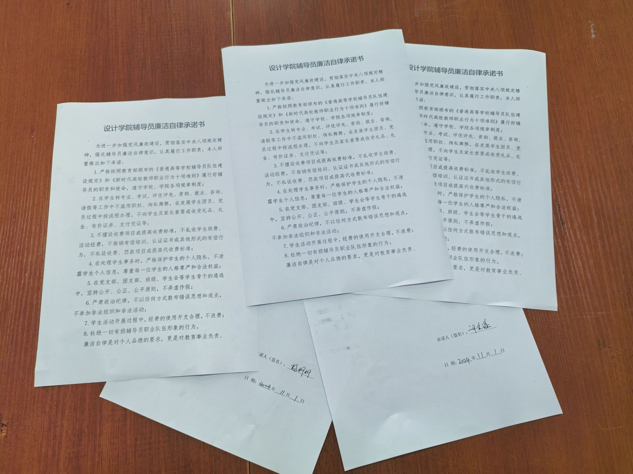 谈话结束后,全体辅导员现场签订了《永利集团88304辅导员廉洁自律承诺书》。