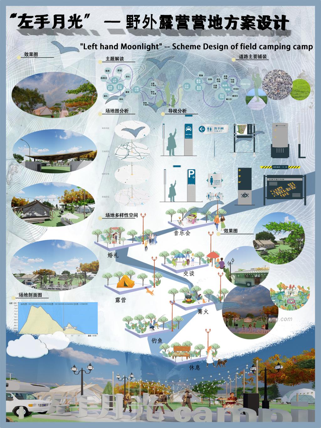作品:左手月光-野外露营营地设计 创作人员:侯晶、王光宇 指导教师:谢经纬