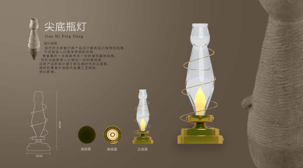 作品:尖底瓶灯 创作人员:杜家倪、田霞、张岳 指导教师:周著