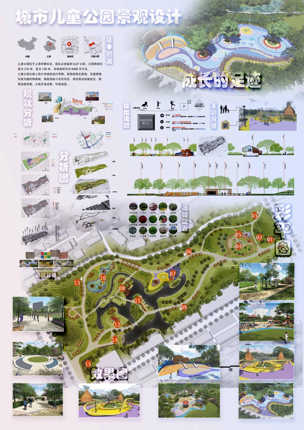 作品:成长的足迹—城市儿童公园景观设计 创作人员:李柯瑶 指导教师:宋旭 谢经纬
