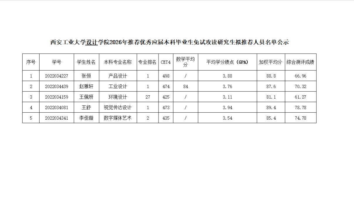 永利集团883042026年推荐优秀应届本科毕业生免试攻读研究生拟推荐人员名单公示